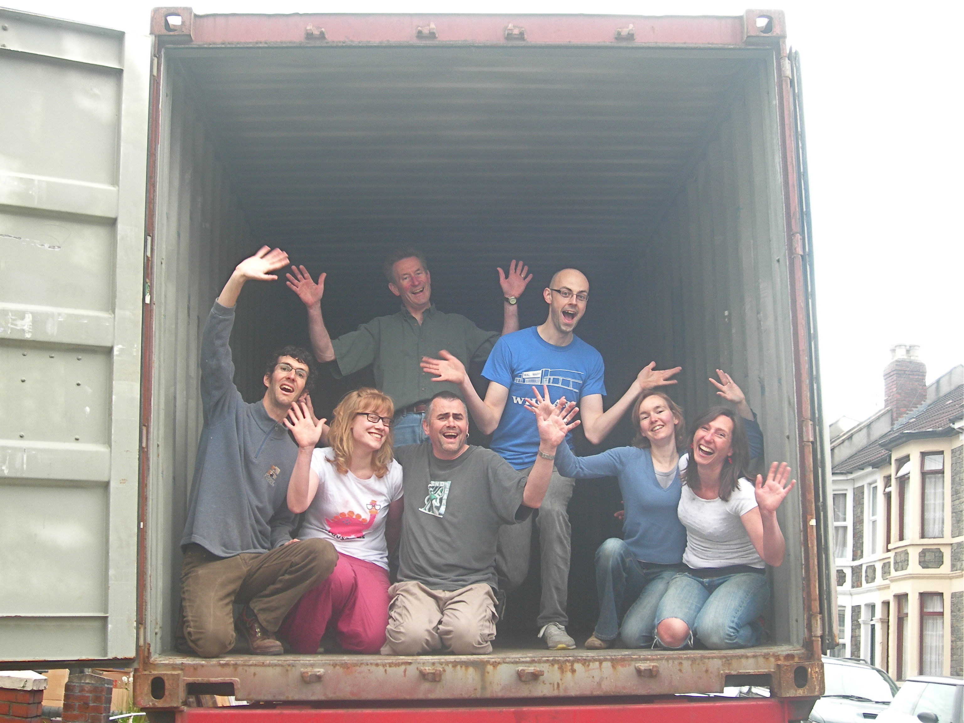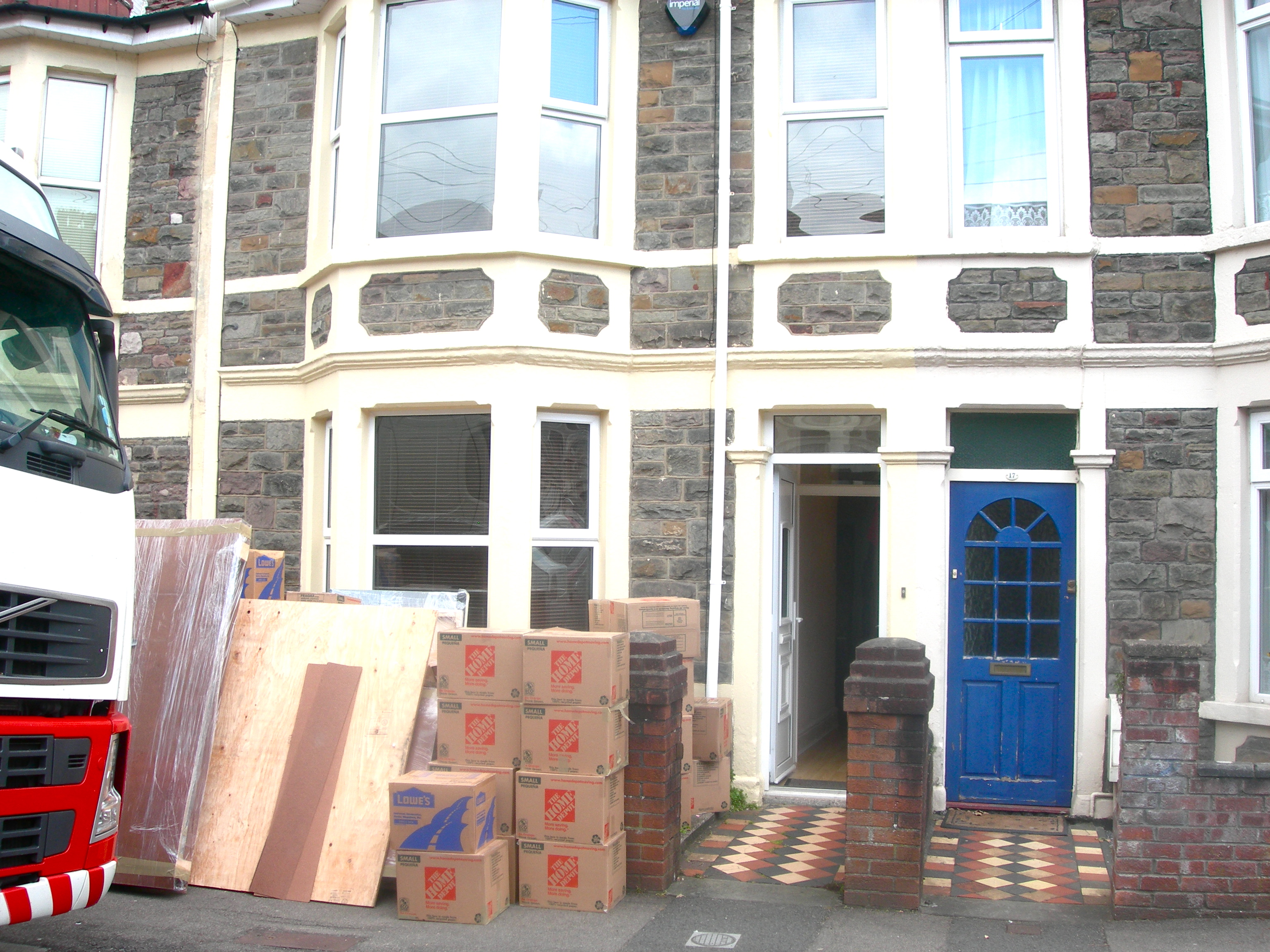 Here are Dylan and myself at our new home on Chatsworth Rd in Bristol.  We like it!  Moving Day!  And we were so blessed to have our new friends show up on moving day when the container arrived at our new home!  So what seemed impossible to me, God made possible.  And we are so blessed to have such great new friends.  More another day!! Please comment on our blog – we love to hear from you.