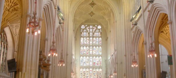 We write to you to keep in touch, let you know what we’re doing, and we do this  with great joy because God is continuing to bless us on this amazing journey He has us on!  Below is a picture of the beautiful Bath Abbey which recently began selling Christine’s icon cards in their gift shop – praise God!