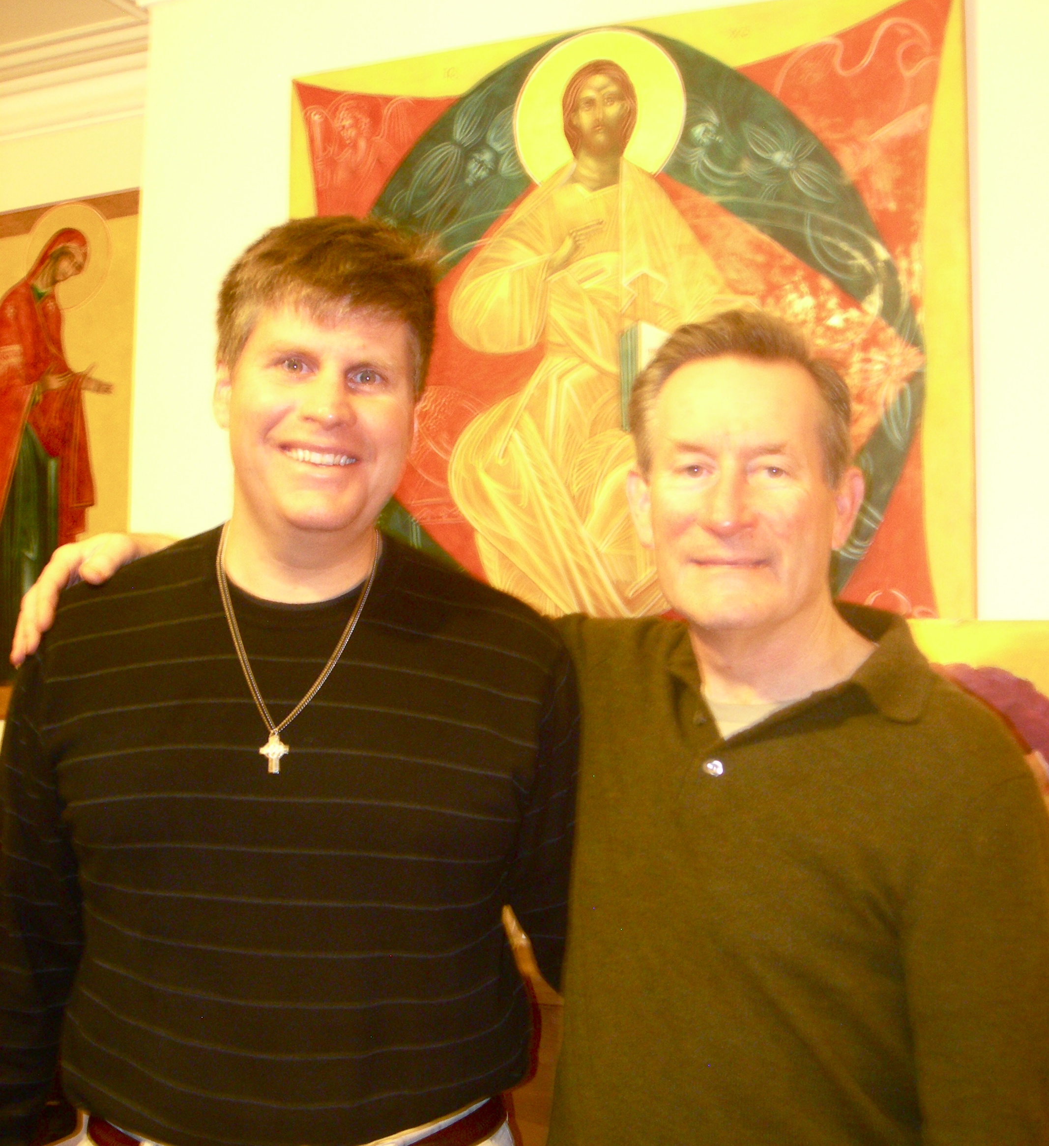 friends in God’s world and ours!  First, our good friend from Randy Clark’s School, Chad Cromer came with his new fiance.  They were guests at our February House of Prayer meeting, met the minister of the church we are attending,  and gave some powerful healing prayer which resulted in at least two healings that night!     Our next visitor was Fr. Scott Evans from upstate New York who came for the London Alpha conference. We were blessed by a wonderful night of prayer and fellowship before he headed to London.   (You’ve got to love my icon of  “Christ in Glory” behind them in the photograph.  It looks like they are right in God’s embrace, as indeed they are!)