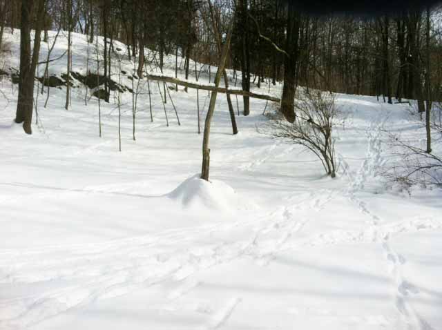 This cross is in our back garden and you can see the deer tracks running through!
