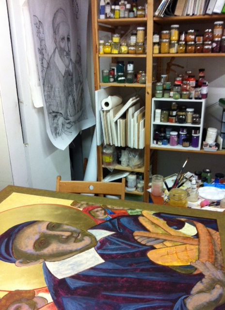 I’m planning on finishing the large Icon commission for Saint Vincent’s in April, God willing. Just about to  get on the board – Dorothy Day. So looking forward to praying with and about her and the amazing woman of God she was. Just started teaching a new Icon writing class in Hillsdale, and will be leading an Introduction to Icon Writing Retreat at Saint James Episcopal Church in NYC in February. It got filled up in the first week of listing it!photo