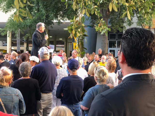 Fr. Robinson addressing the crowd during Stations of the Cross on Good Friday